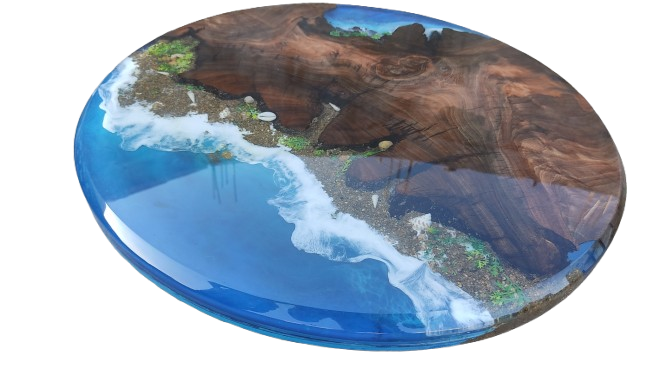 This handcrafted circular coffee table features natural solid wood combined with premium epoxy resin. Its smooth round design adds elegance and modern style, making it perfect for living rooms, cafés, and luxury interiors. Durable, unique, and easy to maintain.